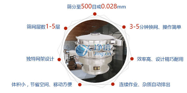 1.篩分過程全封閉,粉末不飛揚、液體不泄露、改善生產環境,篩分最細可達500目(28微米)過濾最細可達5微米。